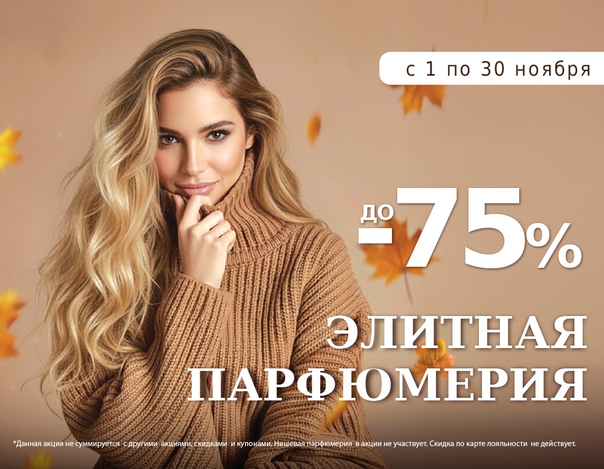 СКИДКА до - 75% на выделенный ассортимент Элитной парфюмерии.